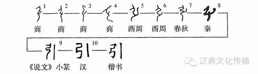 指事字。甲骨文“引”字從弓、從丿,“丿”表示引弓。兩周文字承襲商代文字?!墩f(shuō)文》篆文“引”字所從的“丿”變?yōu)橐回Q,為隸楷“引”字所本。《說(shuō)文》:“引,開(kāi)弓也。”本義是開(kāi)弓。《莊子·田子方》:“列御寇為伯昏無(wú)人射,引之盈貫。”引申有延長(cháng)、長(cháng)久義。《爾雅·釋詁上》:“引,長(cháng)也。”甲骨文習見(jiàn)“引吉”,義為長(cháng)吉。《易·萃》六二:“引吉,無(wú)咎。”毛公鼎“皇天引厭厥德”(皇天將長(cháng)久地飽享您的恩德)與《書(shū)·洛誥》“萬(wàn)年厭于乃德”義同。又通“矧”,副詞。毛公鼎:“無(wú)唯正聞,引(矧)其唯王智(知)。”(連正常(道理,事情)都不知道,王還能知道什么?)(徐在國)