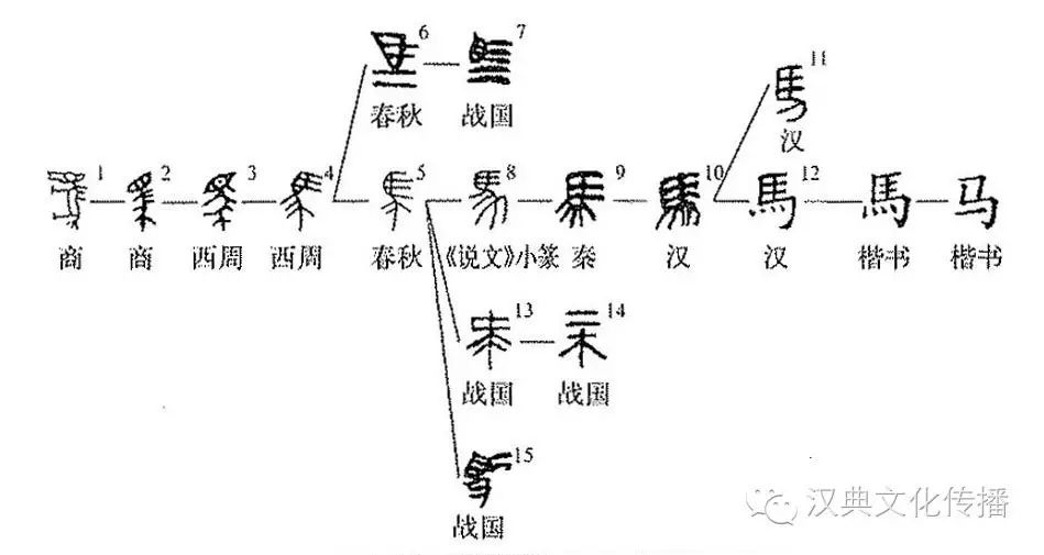 象形字。像馬形,頭尾四足俱全,背部三筆像馬鬃形。春秋戰國文字中,馬身或用重文或省字符號代替,寫(xiě)作