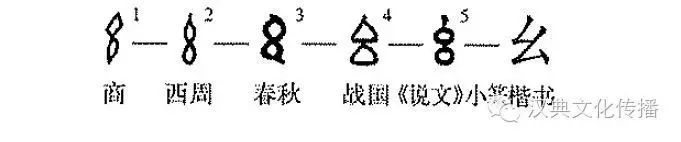 “幺”字讀作yāo,是個(gè)象形字。①是周朝早期金文的形體,像一小束絲的樣子。②是小篆的寫(xiě)法,與金文的形體相似。③是楷書(shū)的形體。