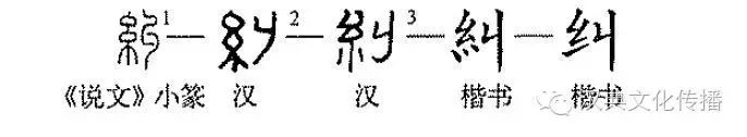 會(huì )意兼形聲字。《說(shuō)文》:“糾,繩三合也。從糸、丩。”“糾”是“丩”的分化字。《玉篇·丬部》:“糾,絞也,繚也。”“丩”本像糾纏形,后加意符“糸”表義更加明確?!墩f(shuō)文》以為“糾”本義是三股絲麻絞合的繩子,可能是”糾”的引申義。在現在常用的“糾纏”中,“糾”用的還是本義?!凹m”字從糸、丩,丩亦聲。此字出現較晚,《說(shuō)文》小篆以前的古文字形尚未發(fā)現,已見(jiàn)的漢隸字形與楷書(shū)差別不大。(李守奎)