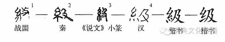 形聲字。從糸,及聲。始見(jiàn)于戰國文字?!凹啊敝误w演變,參“及”字條?!凹墶蹦恕凹墶敝?jiǎn)化字。《說(shuō)文》:“級,絲次弟也。”本義是絲的優(yōu)劣次第,引申為等級,特指官階爵位的品級。《左傳·僖公九年》:“以伯舅耋老,加勞,賜一級,無(wú)下拜。”(因為伯舅年紀大了,加上功勞,賜給一等,不用下階跪拜)又引申指臺階。通“及”。郭店楚墓竹簡(jiǎn)《語(yǔ)叢四》5:“既得其急言,必有級(及)之。”(徐在國)