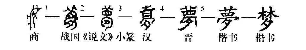 請注意:《說(shuō)文》將“夢(mèng)”與“?”分為二字,其實(shí)在上古本為一字,只是寫(xiě)法稍有不同。《說(shuō)文》:“?,寐而有覺(jué)也。”許慎以“?”為本字。