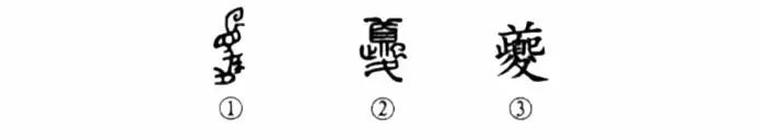 這個(gè)“夔”字讀作kuí,本為象形字。①是金文的形體,是傳說(shuō)中的山中怪物,上部為有角的頭,中部有尾,下部是一只腳。②是小篆的形體,變得雖很復雜,但仍能看出上為“首”下為“足”。③是楷書(shū)的寫(xiě)法。