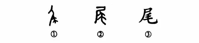 長(cháng)了一條大尾巴。小篆②的上部為“尸”,其下為“毛”(尾巴)。③是楷書(shū)的寫(xiě)法,根本看不出人長(cháng)尾巴的形象了。實(shí)際上“尾”字是個(gè)象形字,特別是“毛”更像尾形。