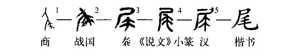 會(huì )意字。《說(shuō)文》:“尾,微也。從到(即倒字)毛在尸后。古人或飾系尾,西南夷亦然。”段玉裁注:“微,當作,妝,細也。此以疊韻為訓。如:門(mén),捫也,戶(hù),護也之例?!斗窖浴吩唬何?,盡也;尾,梢也。引申訓為后?!逗鬂h書(shū)·西南夷列傳》曰:‘槃瓠(盤(pán)古)之后,好五色衣服,制裁皆有尾形?!次矠榍莴F之尾,此甚易解耳,而許必以尾系之人者,以其字從尸。人飾系尾,而禽獸似之。許意如是。”段注不明白《說(shuō)文》所說(shuō)古人或飾系尾之義,但從商代甲骨文看,尾字形體確為人系一尾形,至于甲骨文之尾字的用法卻不詳,為什么人系一尾形也不清楚,但足以證明商代確有系飾尾之事,《說(shuō)文》所說(shuō)確有實(shí)據。從甲骨文尾字形體看,尾字的本義絕不是禽獸之尾,恰是人飾之尾,引申為動(dòng)物之尾。(周寶宏)