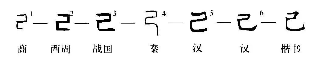 “知彼知己,百戰不殆?!边@個(gè)“己”字,甲、金、篆俱全,是個(gè)象形字。①是甲骨文的形體。羅振玉和郭沫若都認為,“己”像系在箭上用以射飛鳥(niǎo)的彎彎曲曲的絲繩之形,也就是“弋”字的本字。②是金文的形體,與甲骨文極為相似。③是小篆的形體。④是楷書(shū)。均由甲骨文演變而來(lái)。