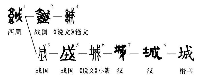 會(huì )意兼形聲字。從土,從成,成亦聲。先秦文字有兩個(gè)系統:一系從