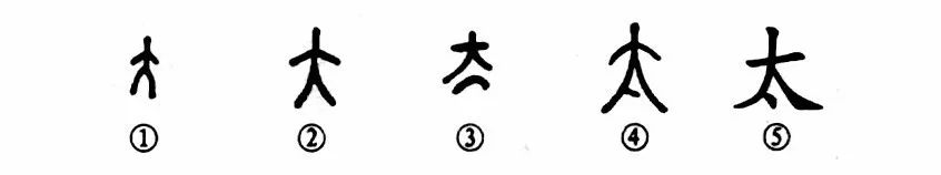 “四方無(wú)事太平年?!痹谏瞎?,“太”與“大”均寫(xiě)作“大”,是個(gè)象形字。甲骨文①和金文②中的“太”字就是“大”字,像正面站立的人形。③是陶文的形體,下面又增加一個(gè)曲筆,以便與“大”字相區別。④是小篆的形體,其下變?yōu)橐稽c(diǎn)。⑤為楷書(shū)的寫(xiě)法。