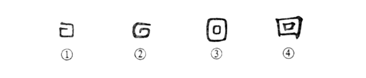 這個(gè)“妙手回春”的“回”字是個(gè)象形字。甲骨文①就像流水的旋轉之形。金文②仍然是水的旋轉之形,只是與甲骨文旋轉的方向相反。③是小篆的形體,為了符合漢字結構規整的要求和書(shū)寫(xiě)的方便,竟變成了大口套住小口。④是楷書(shū)的寫(xiě)法。