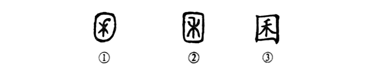 “不稼不穡,胡取禾三百?lài)镔猓?/strong>”這個(gè)“囷”字讀作qūn,本為會(huì )意字。①是古陶文的形體,其外部很像囤子形,內部是“禾”,表示裝有糧食。②是小篆的形體,與古陶文相似。③為楷書(shū)的形體。