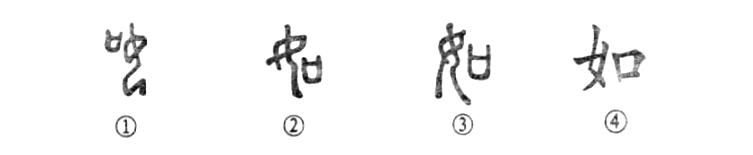 “忽如一夜春風(fēng)來(lái),千樹(shù)萬(wàn)樹(shù)梨花開(kāi)?!边@個(gè)“如”字本為會(huì )意字。①是甲骨文的寫(xiě)法,左邊是口,右邊是跪著(zhù)的女人,雙手交叉置于胸前,表示“從命”之意。②是石鼓文的形體,“口”與“女”位置調換,其義不變。③是小篆的形體,與石鼓文基本相同。④為楷書(shū)的寫(xiě)法。