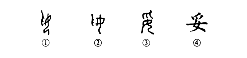 這個(gè)“妥”字是個(gè)會(huì )意字。甲骨文①的左上部是一只手(爪),右邊跪著(zhù)一個(gè)婦女,是制服女奴之形。金文②的形體也基本上同于甲骨文,不過(guò)其右邊的婦女有點(diǎn)半站的樣子。小篆③則手在婦女的頭上,這不僅為了結構合理,而且也更能顯示制服之意。④是楷書(shū)的寫(xiě)法,是由小篆直接演變而來(lái)。
