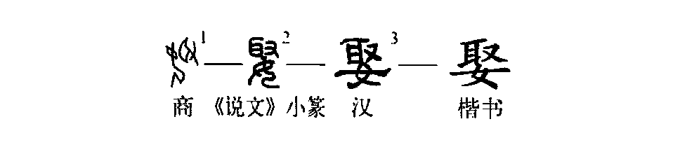 這是“婚喪嫁娶”的“娶”字,是個(gè)會(huì )意兼形聲的字。①是甲骨文的形體,左邊是“女”,右上邊是一手揪住一只耳朵,即為“取”。②是小篆的形體,與甲骨文相一致。③是楷書(shū)的寫(xiě)法。