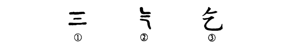 “小樹(shù)不禁攀折苦,乞君留取兩三條?!痹诩坠俏?、金文中,“乞”與“氣”同字,均為象形字。①是甲骨文的形體,像高空飄浮的云氣,不能認作“三”字。②是金文的形體,也像云氣的形狀。③為楷書(shū)的寫(xiě)法。中間減去了一橫,專(zhuān)用作“乞求”之“乞”。