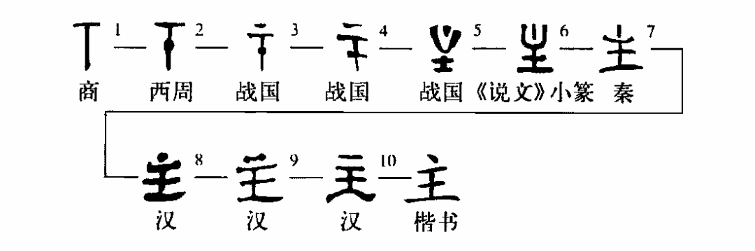 象形字。初文像神主(即受祭祀的死者的牌位)形?!爸鳌弊殖跷某鲎陨檀?,與“示”詞義相關(guān),因此與“?”共用一字,后漸分化。(參見(jiàn)“示”字條)寫(xiě)“主”的“T”字在西周時(shí)代于豎筆中部加圓點(diǎn),至戰國,圓點(diǎn)變成短橫,后又在中豎底部加一橫,而頂部長(cháng)橫兩端上翹而呈弧形,原長(cháng)橫頂上的飾橫變成豎點(diǎn),小篆把豎點(diǎn)寫(xiě)成上銳下肥的“瓜子”點(diǎn),并把底橫延長(cháng),秦簡(jiǎn)及西漢早期簡(jiǎn)帛把左右上翹的弧筆的弧度大大減低,直至恢復為平直的橫筆,并且把頂部的豎點(diǎn)又變?yōu)槁远痰臋M筆,但在東漢隸書(shū)中,這一橫筆寫(xiě)得稍長(cháng),后世楷書(shū)把頂橫寫(xiě)成斜點(diǎn)。本義即神主。《周禮·春官·司巫》:“祭祀則共匣(dān,盛放神主之器)主。”引申為家長(cháng)、君主、首領(lǐng)、主人。由君主義引申指公卿大夫及其正妻,也引申為根本、主掌、守護,由主掌義引申為主張、主治(中醫術(shù)語(yǔ))。以上諸義都讀zhǔ。還有讀zhù的情況:一是火炷,燈心,即《說(shuō)文》所謂“鐙中火主”,后來(lái)專(zhuān)用“炷”字;二是作量詞,相當于件、樁;三是灌入,后來(lái)專(zhuān)用“注”字。(金國泰)