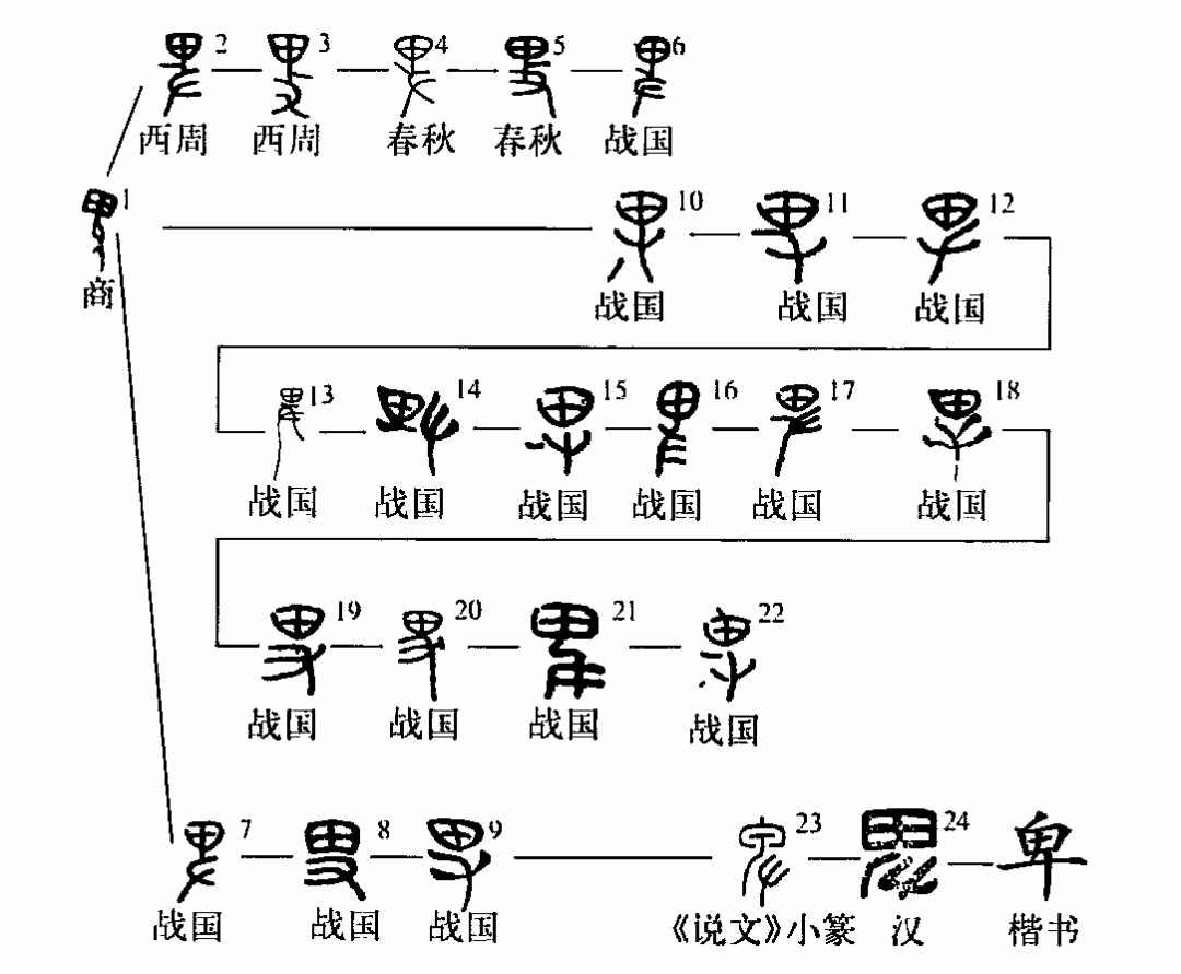 ,或田上出頭為由?!墩f(shuō)文》整理作從??甲是理?yè)貥???瑫?shū)作卑?!犊滴踝值洹?筆,作