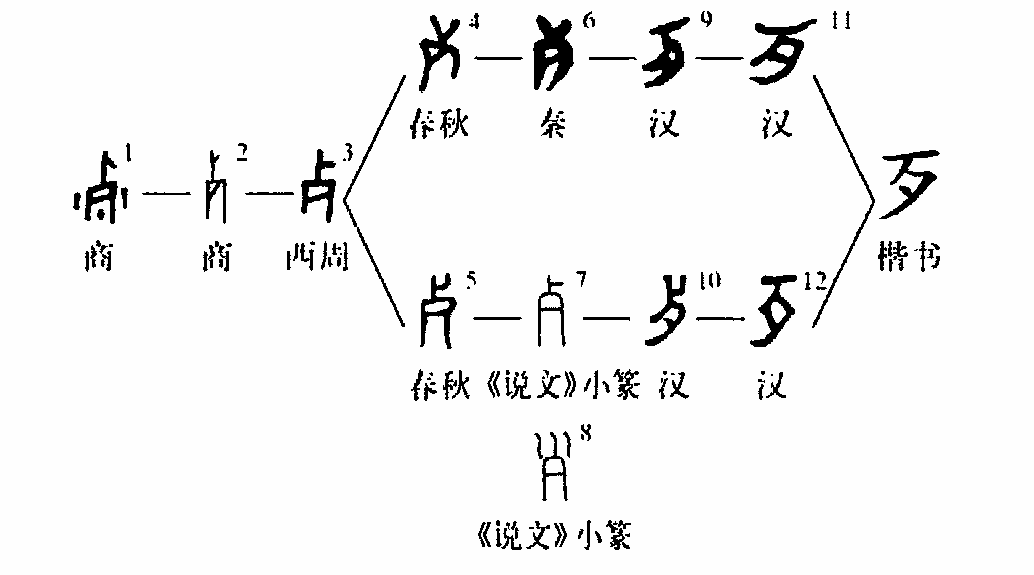 這是個(gè)“歹”字。甲骨文①的上部像骨頭破碎的裂紋,下部像死人的空骨。金文②和小篆③也大體與甲骨文相似。所以“歹”字的本義就是死人的殘骨。 因此,凡是從“歹”的字,大都與死有關(guān),如“死”、“殮”、“殪”、“歿”等。 現在引申為“不好”,稱(chēng)之為“歹”,如“不識好歹”。