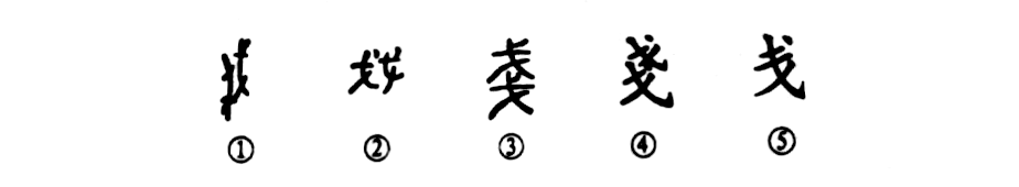 這是“戔戔微物”的“戔”字,讀作cán,本為會(huì )意字。甲骨文①像兩戈相向,當為“殘”的初文。②是戰國楚簡(jiǎn)文字,兩戈并列。③是小篆的的形體,兩戈上下結構。④為楷書(shū)繁體字。⑤為簡(jiǎn)化字。