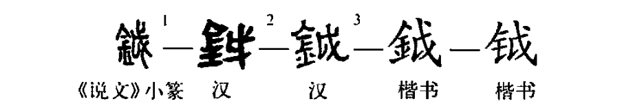 形聲字。《說(shuō)文》:“鉞,車(chē)鑾聲也。從金,戉聲。《詩(shī)》曰:鑾聲鉞鉞。”徐鉉:“今俗作鐬,以鉞作斧戉之戉,非是。”桂馥義證:“《詩(shī)》曰者,《魯頌·泮水》文,彼作鸞聲噦噦。傳云:噦噦,言其聲也。馥案:鉞噦聲相近,本書(shū)眓讀若《詩(shī)》曰施罛濊濊。”邵瑛群經(jīng)正字:“此文《詩(shī)》凡三見(jiàn),《采菽》作嘒,《庭燎》、《泮水》作噦,皆取聲同假借,而義與《說(shuō)文》同。”據西周金文和傳世典籍戉與鉞為古今字,戉本為斧鉞的象形字,后加金字旁作鉞。從《說(shuō)文》所引用的《詩(shī)》“鑾聲鉞鉞”句看,鋮、噦、嘒皆為借用,鉞當為戉之今字。本義為斧鋮。(周寶宏)