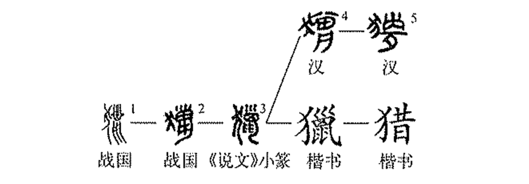 形聲字。從犬,巤聲。本義為捕捉禽獸、打獵。《說(shuō)文》:“獵,放獵逐禽也。”《詩(shī)·魏風(fēng)·伐檀》:“不狩不獵,胡瞻爾庭有縣貆兮?” (從來(lái)不曾去打獵,為何你家院子掛有獾呢?)鄭玄箋:“冬獵曰狩,宵田曰獵。”馬王堆漢墓帛書(shū)《老子乙》:“驅騁馳獵而不禽芒(荒)。”由捕捉禽獸引申為搜尋、追求、涉獵等義。戰國金文為左“犬”、右“巤”,秦簡(jiǎn)、小篆與之一脈相承;漢代簡(jiǎn)帛文字“巤”有所訛變簡(jiǎn)省;楷書(shū)由小篆演變而來(lái),寫(xiě)作“獵”?,F代漢字簡(jiǎn)化時(shí),人們參照“臘”、“蠟”的簡(jiǎn)化方法,借用“獵(xī,獸名;què,良犬名)”作為“獵”的簡(jiǎn)化字。(郭小武 葉青)