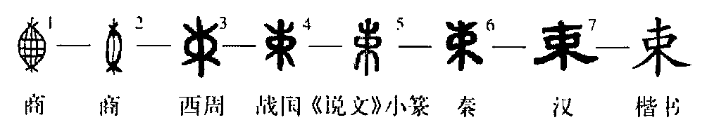 (字形2),像兩頭用繩索扎住的橐(橐無(wú)底,所以盛物時(shí)要扎住兩頭),是“束”字的初文,也是“橐”字的初文(參見(jiàn)橐部“橐”字條);又曾借為“東”本義是系,捆。《說(shuō)文》:“束,縛也。”《詩(shī)·鄘風(fēng)·墻有茨》:“墻有茨,不可束也。”《左傳·襄公二十八年》:“士皆釋甲束馬而飲酒。”引申指約束,拘束。《玉篇·木部》:“束,約束。”《莊子·秋水》:“曲士不可以語(yǔ)于道者,束于教也。”又用為量詞,捆兒。《詩(shī)·王風(fēng)·揚之水》:“揚之水,不流束薪。”(冀小軍)