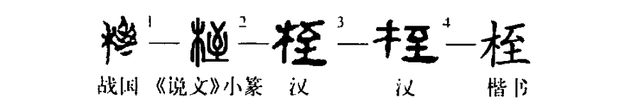?這是“中罪桎梏”的“桎”字,讀作zhì,本為形聲字。①是小篆的形體,為“從木,至聲”的形聲字。②是楷書(shū)的寫(xiě)法,與小篆完全一致。