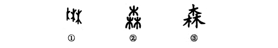 這個(gè)“森”字是個(gè)會(huì )意字。你看甲骨文①就是一排三棵樹(shù)的形象,這真是樹(shù)木叢生,森林茂密。②是小篆的形體,“林”上有“木”,這并非說(shuō)樹(shù)上有樹(shù),而是為了美觀(guān)和符合方塊結構的要求。③是楷書(shū)的寫(xiě)法,是由小篆直接演變而來(lái)。