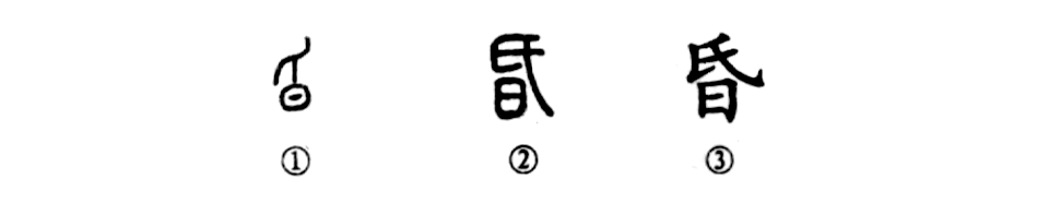 “日月有恒昏,雨露未嘗晞。”這個(gè)“昏”字原為會(huì )意字。甲骨文①的上部為人形,其下為“日”,太陽(yáng)降至人手以下,表示黃昏時(shí)分。這與“月”在人的腋下為“夜”是同樣的道理。②是小篆的形體,原來(lái)的“人”形訛變?yōu)?ldquo;氏”。③楷書(shū)的寫(xiě)法。