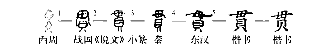 ”,像穿貝之形,為“錢(qián)貝”之“貫”的本字。戰國文字字形已演變?yōu)閺呢?,毌聲?strong style="margin: 0px; padding: 0px;">《說(shuō)文》:“貫,錢(qián)貝之貫。從毌、貝。”按:《說(shuō)文》分析有誤,當從“毌”聲。金文中方鼎用為“錢(qián)貝”之“貫”:“今兄(貺)貫女(汝),?土作乃采。”(《集成》5.2785)后來(lái)也指錢(qián)串子。《漢書(shū)·食貨志上》:“京師之錢(qián),累百鉅萬(wàn),貫朽而不可校。”后以千錢(qián)為一貫。由“錢(qián)貫”之“貫”又引申出“積累”之義。《楚辭·離騷》:“貫薜荔之落蕊。”王逸注:“貫,累也。”又引申為“統一”之義。《論語(yǔ)·里仁》:“吾道一以貫之。”又引申為“條理”、“隸屬”等,如“條貫”、“籍貫”。“貫穿”、“貫通”等義都是“毌”字的假借。《左傳·成公二年》:“矢貫余手及肘。”也引申為“通過(guò)”、“經(jīng)過(guò)”之義。《淮南子·時(shí)則》:“貫大人之國。”高誘注:“貫,通也。”又引申為“貫徹”、“實(shí)行”之義。《后漢書(shū)·東平憲王蒼傳》:“奉承貫行。”李賢注:“貫行,謂一皆遵奉也。”也假借為“摜”、“慣”、“遦”,指“習慣”之義。《孟子·滕文公下》:“我不貫與小人乘。”又引申為“事務(wù)”等義。《論語(yǔ)·先進(jìn)》:“仍舊貫。”也用作動(dòng)詞,為“事奉”、“養活”等義。《詩(shī)·魏風(fēng)·碩鼠》:“三歲貫女,莫我肯顧。”毛傳:“貫,事也。”也假借為“彎”,表示“彎弓”之義。又假借為“卝”,表示“結發(fā)”之義。“貫”今簡(jiǎn)化為“貫”。(王志平)